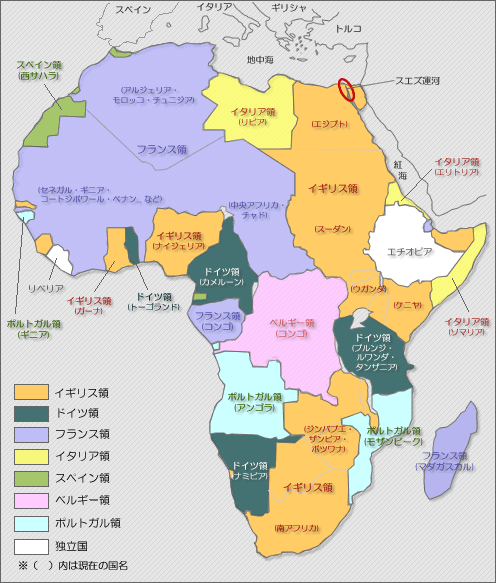 ※リベリアとエチオピア以外は、アフリカのすべての地域が植民地